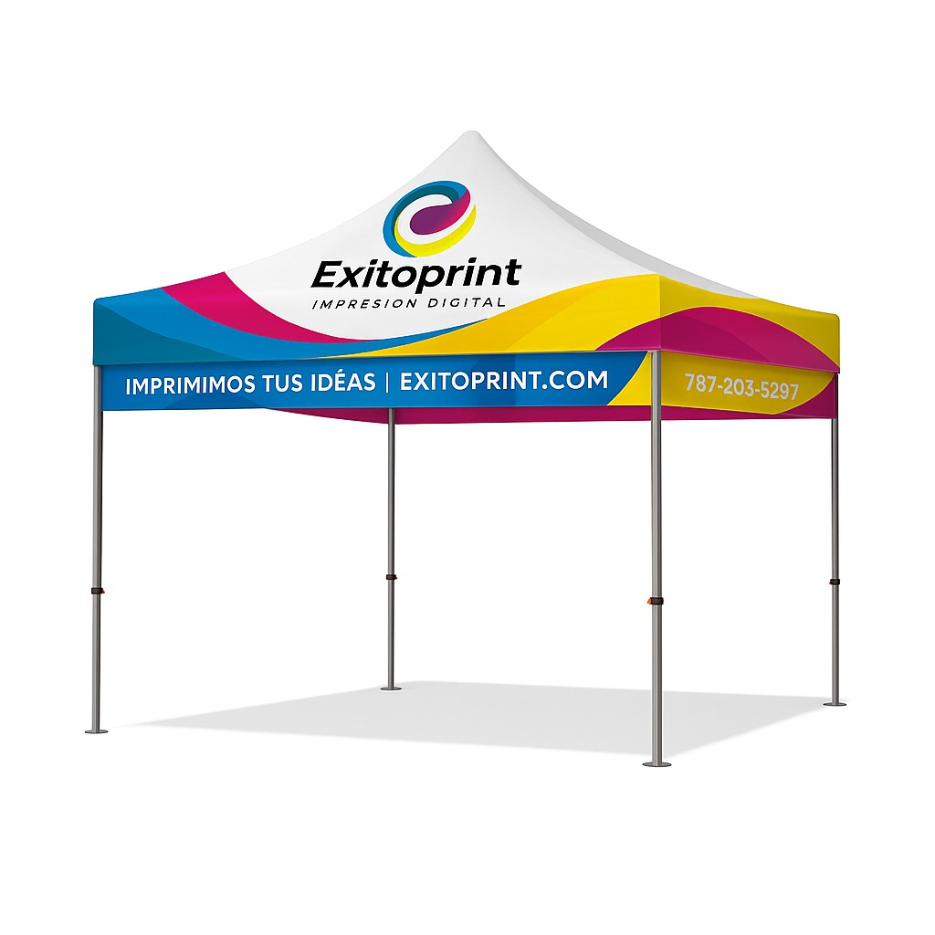 La mejor manera de destacar en cualquier evento. Carpa personalizada completa, resistente, con impresión profesional en todo el canopy. Ideal para ferias, actividades al aire libre, mercados y presentaciones de marca.